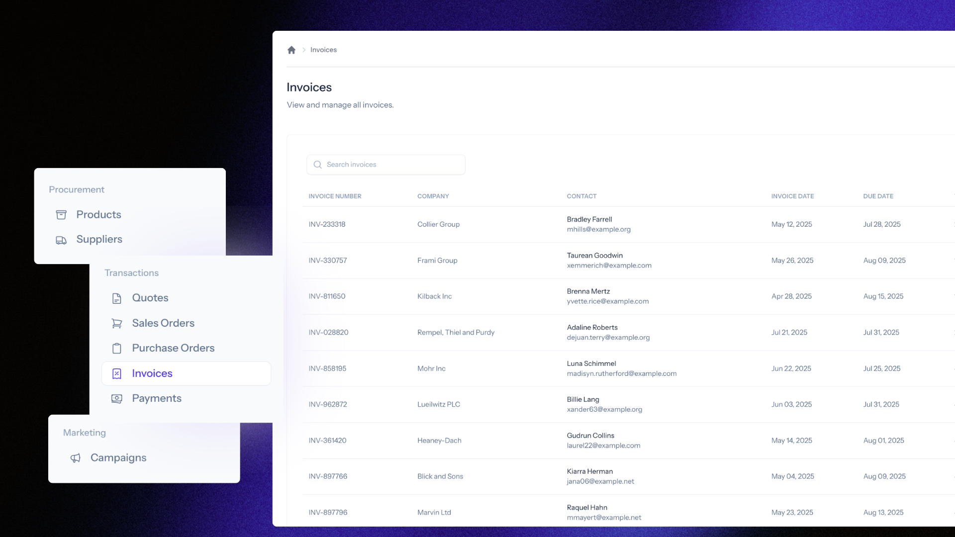 Tanuki CRM handles every stage of the sales process—managing quotes, purchase orders, sales orders, and invoices in one streamlined system.